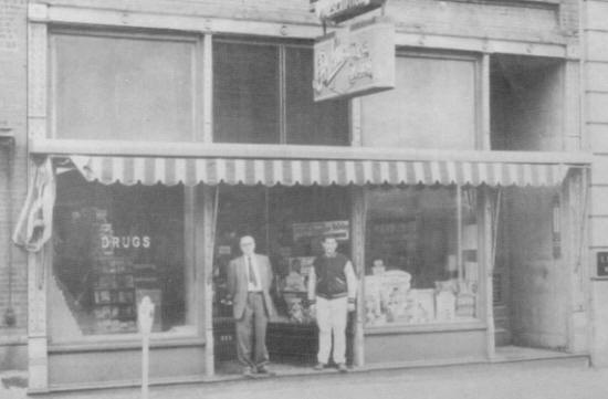 The Sniteman Pharmacy at 538 Hewett Street, Neillsville, which has retained the name of its longtime previous owner, Charles C. Sniteman. Looking at the upper front exterior of the building, you can see the wording C. C. Sniteman Company, 1895. Mr. Sniteman was a very civic minded individual who actively pursued establishing new businesses, factories and helped develop city improvements while being a resident of Neillsville. (photo was taken during c.1940-1950. If you can identify the men in the picture, please contact us.) |