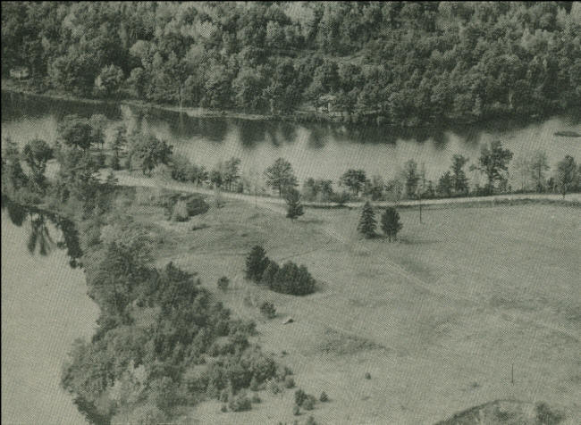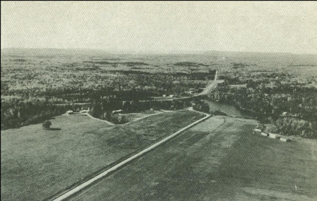 An aerial view of Snyder Dam and Lake as it appeared when the Neillsville airport was on the north side. The road seen in the photo is Hwy 10.