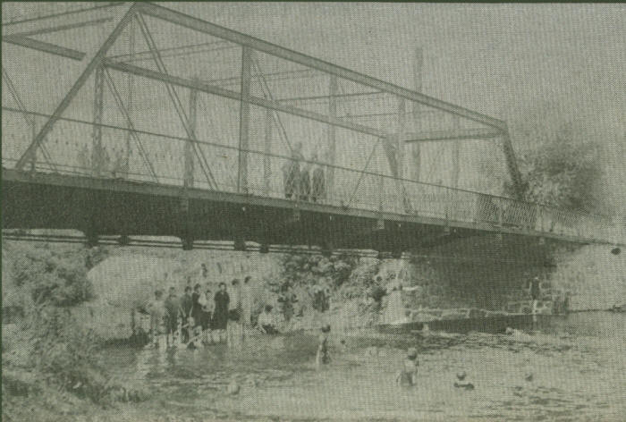 A scene at the old Neillsville City Swimming Pool taken circa 1910. The old ornate bridge spanned O’Neill Creek carrying Hewett Street and Highway 73 traffic for a number of years. In 1943, the bridge had to be replaced when a milk truck driven by Walter Aumann broke through.