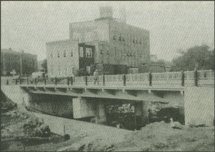 The new Hewett Street Bridge built across O’Neill Creek in 1943. The Milk Condensery Plant is visible in the background, corner of 8th and Hewett and now the site of the Neillsville Fire Department building. (This photo is looking to the south west)