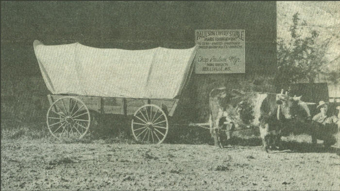 Chap Paulson built a covered wagon which was used in the Clark County Centennial Parade. He made t he unit look very authentic by adding a team of oxen to pull the wagon. As we have heard, Chap recently was still putting together replicas of the pioneer covered wagons. Chap and his wife now live in New Mexico and one of his covered wagons is on display at the holiday Inn in Las Cruces.