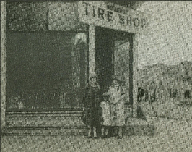 The Neillsville Tire Shop as it appeared in 1926, located on the corner of West and 5th Streets. The Clark County Abstract business is now at the corner lot. In front of the shop was Mrs. Paul (Mamie) Blum, her daughter, Louise (Hoebling) and Mamie’s sister.