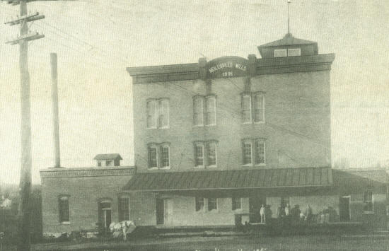The Neillsville Mill, a grist mill was located on the southern bank of O’Neill Creek along Hewett Street. The date of its origin, 1891, is displayed near the roof line as well as the business name. Owners were A. B. Marsh and W. L. Hemphill. It’s now the site of the Neillsville Fire Hall.