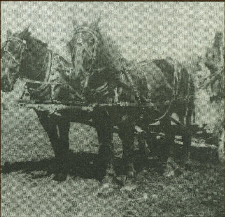 The pioneers relied on their horses in helping them clear the land as they set up homesteads on the yet undeveloped land. In the beginning, oxen were used, but though strong, they were very slow. Horses became the means of power for hauling timber out of the woods, pulling stumps, drawing the plows-machinery and means to transportation, to and from town, by horseback or pulling the buggy.