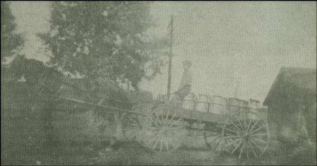 Larry Langreck with the family’s reliable mare, Maude, as they left the farm to haul milk to the Milk Products plant in Neillsville. Ben Langreck, Larry’s dad, rented the Buddenhagen farm, northeast of Neillsville. The farm is now owned by Walter and James Wetzel.