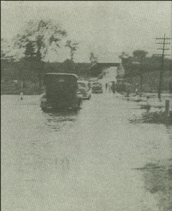 With guard rails as their guide, motorists drove their cars through the water which covered the roadway on Highway 10, hoping the road was still there.