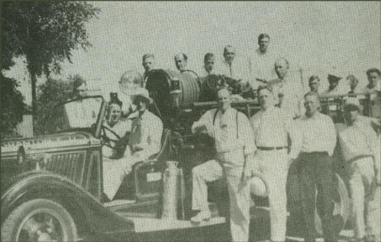 The Granton Volunteer Fire Department organized in May, 1916. They voted to buy a fire bell not to exceed $30.00 which was used for many years. The first fire truck was purchased in 1934. Above are the Granton Firemen who served their community in the 30’s or 40’s time period. Back row, left to right, (standing behind firehose): Paul Spaete, Elmer Marg, Sam Schroeder, Dr. Wink, Arlo Lautenbach, Martin Lautenbach, Arnold Garbisch and Vernon Peterson. Left to right, behind the windshield are; Art Eibergen, Tab Erickson and Chester Finnegan: Standing along the side of the truck, in front are: Lloyd Spry, Mike Zahradka, Carl Bladl, Clarence Nowack and Roland Quicker.