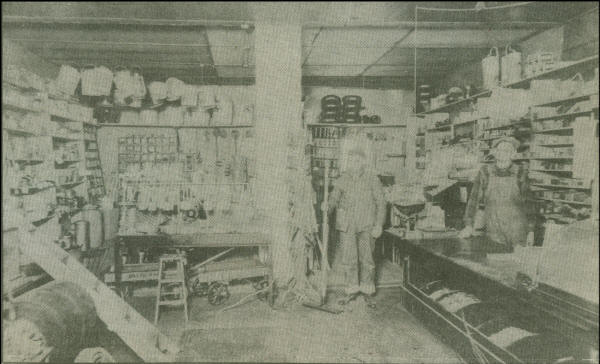 The Lautenbach Hardware Store as it appeared in 1924. Near the center of the photo, holding a rake in his hand was William Messenberg. Arlo Lautenbach was standing behind the counter.