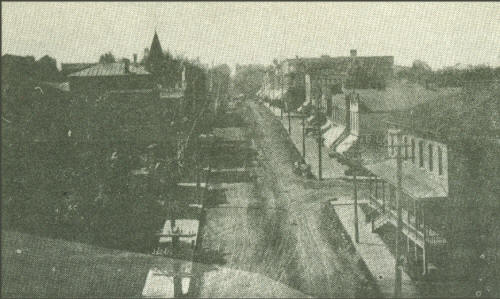 Hewett Street, Neillsville, during the boardwalk and non-surfaced streets. To the right of the photo is the Merchants Hotel, 7th Street and B. Dangers store on the corner. The O’Neill House is on the left side with the Presbyterian Church spire visible in the background. (House photos, courtesy of Pat Struble)