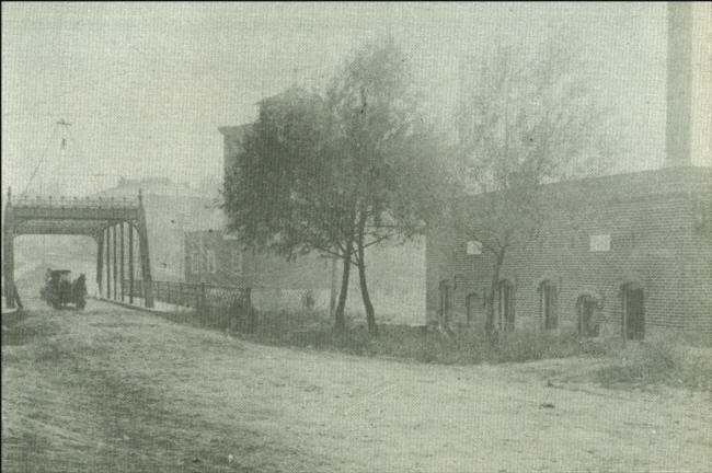 When life went at a slower pace… a horse and carriage, followed by a lumber wagon, makes their way over the wooden platform of O’Neill Street Bridge, onto the earthen road ahead. In the distance, behind the bridge view, is the Merchants Hotel. Between the bridge and trees, stands the old Grist Mill that was located on the south bank of O’Neill Creek, one of Neillsville’s first businesses. The brick building on the right is that of the city’s first electric light plant.