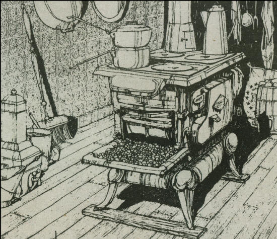 Soon we will hear the familiar words from a favorite Christmas song being sung … Chestnuts roasting by the open fire … this line of the lyrics was derived from the scene such as that above. This model of cooking stove had the extended cast iron shelf connected to the fire box that generated a large amount of heat along the iron plate, ideal for roasting nuts for the holiday season. The stove legs were set upon boards to raise it higher form the floor, a safety feature because of the great amount of heat that the stove was capable of producing. It was surrounded by common items used in that style of stove’s era. (Photo courtesy of Ruth Schultz)