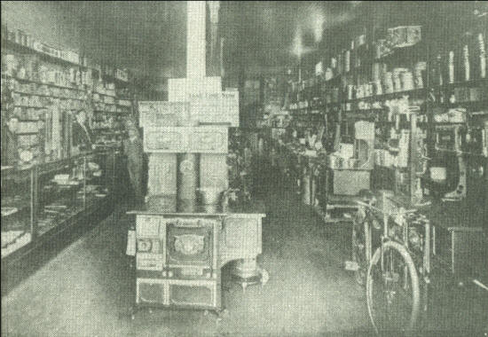 Cash Hardware was located on the northeast corner of 5th and Hewett Street in the late 1800’s. Just as a customer entered the front door, the small model of a shiny new cooking range was on display. To the right, an assortment of cook stoves was lined up along the wall ready to be purchased. (Photo courtesy of Clark County Jail Museum)