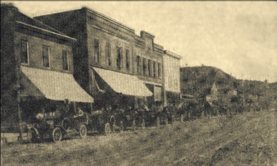 A 1915 view of Humbird’s Main Street: Every car in the village must have been lined up along the street so the families could be seated in comfort while being photographed for whatever event. |