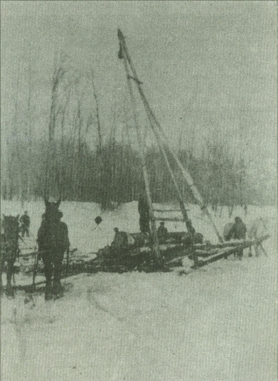There were 125 men employed, working out of the camp, that year. The camp consisted of a large bunk house, cooking and dining shack, big horse barn that sheltered many teams, and storage shed.
