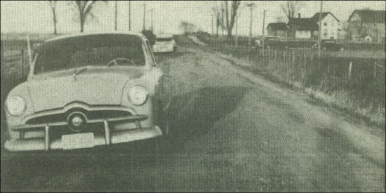 Spring break-up creates a mud problem in Clark County, some years worse than others. In 1955, the above scene with cars parked just off the side roads adjacent to the hard surface highways, was a common sight. If you lived in the country, you willingly walked a distance rather than getting the car buried in mud. The side roads do have more gravel on now, but when the frost goes out too fast, the clay loam below can easily become a quagmire.