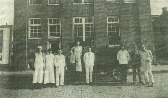 Employees of the ice cream factory on West 7th Street, Neillsville in early 1900s; it later was remodeled into the Milk Pool Plant. The only person we could identify on the photo was Walter Grottke standing on the truck’s running board. (Photo courtesy of Mrs. Grottke)