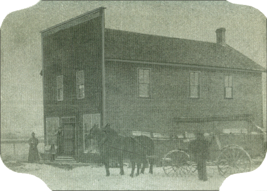 After leaving the Shortville store, Kittie and John Shaffer built a two story building one mile east of Shortville on the Pray Avenue corner. The main floor provided space for a general store business and the second floor was used as a dance hall. About ten years after the Shaffer store building was erected it was destroyed by fire.
