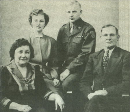 The Mortenson family took time out for a family photograph when son, Bob, came home on furlough during World War II. Left to right: Emily; daughter, Gladys; son, Bob; and Swede.