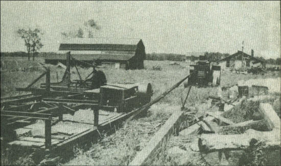 Ed Hagie built a portable saw mill which he set-up in back of his blacksmith shop. It was used to saw lumber for a number of years.