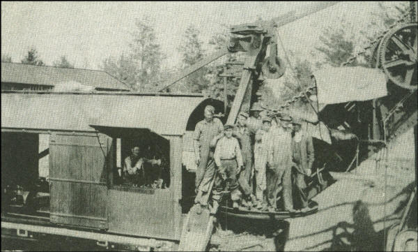 The steam shovel and working crew at the Dells Dam gravel pit.