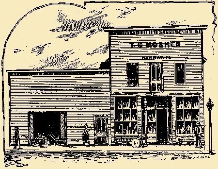 T. O. Mosher Hardware Store built in 1882 in Thorp. He also owned another business building which was leased for millinery shop, some additional village lots and a farm.