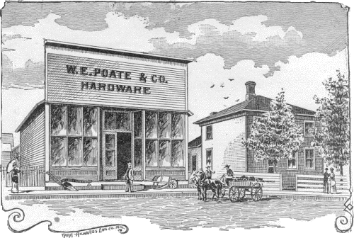 The hardware store of W. E. Poate & Co. and the residence of Poate next to the store were located at Maple Works (Granton). The business was established in 1888. Poate, formerly a tinner at Neillsville: sold heavy and shelf hardware as well as farm equipment. While a resident of Neillsville, Poate served as a captain of Co A. 3rd Regiment Wis. National Guard.