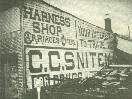 In the Fall of 1970, an old building was torn down on the east side of the Green Lantern Tavern on West 7th Street in Neillsville. As the razing progressed some advertising slogan s hidden for years once again were disclosed for viewing. The building razed had been Joe Zilk’s Standard Oil office, circa 1920.