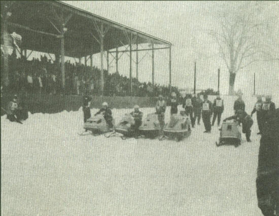 Ready, set – go…. A snowmobile race was held at the Clark County Fairground’s race track on March 5, 1970
