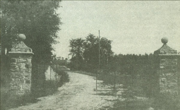 These ornate gate supports stood as sentinels for many years holding the steel gates that guarded the entrance to the then M. C. Ring farm that had been originally homesteaded by Robert Ross. The entrance was about one-half mile south of Neillsville along Hwy. 73 & 95. The farm land was bordered by the Black River and an eddy in that locale was named “Ross Eddy” in memory of Robert Ross who originally cleared the land. (Photo courtesy of Clark County Historical Society Museum)