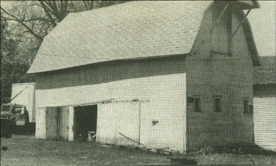 This gable roofed barn has a touch of the Victorian décor at its peak, dating its beginning. The lower stable area is of field stone and mortar construction with the bank barn hay mow drive-in door. It is located along Grand Avenue.