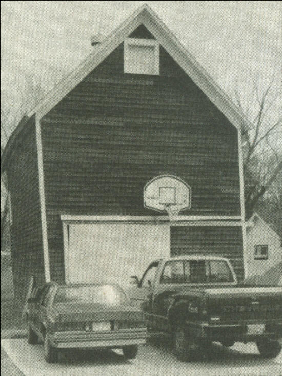 In recent years, a local carpenter dismantled a half timbered barn one-half mile west of Neillsville, along Hwy 10. The frame was of heavy hewn timbers (cut with broad axe). The timbers were brought together and held in place by wooden braces, secured with wooded pegs driven in neat the joints. No nails were used in the framing.