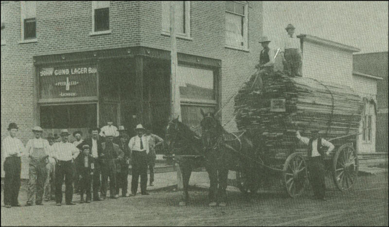 A quality load of lumber merited a photograph taken on the corner of Main and Mill Streets in Loyal, circa 1900. A sign posted on the load (of) lumber, is believed to read, “8,000 feet lumber, John Bertz.” The corner of the building in the background is now occupied by Mill Street Inn.