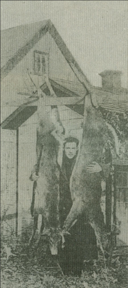 Ivan Fay, as a “greenhorn hunter” proudly held two of the deer he bagged on his first hunt. The successful experience initiated an enjoyable life long sport.
