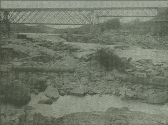 The Black River at low tide during summer near the railroad trestle on Neillsville’s west side, late 1800’s; some logs remain on the river’s edge, remnants of the spring logging drives. (Photo courtesy of Clark County Historical Society’s Jail Museum)
