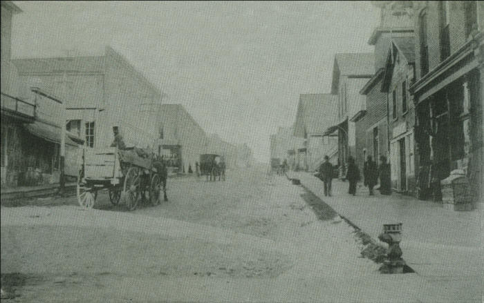 In 1869, the undeveloped area was covered with heavy timber, which included the large white pine trees. Six years later, there were graded streets, bordered by fine buildings. Businesses included mills, hotels, stores, shops, storehouses and commission houses, all neatly maintained.