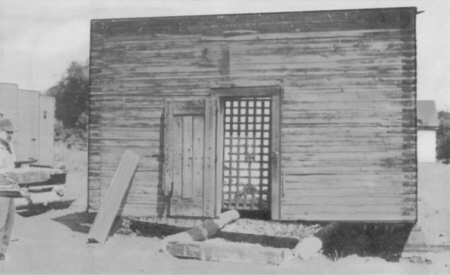 The first jail was built in 1866; the contract being let April 21, 1866, to Hewett, Woods & Co., the building completed Sept. 1, of the same year. The curious structure, made of oak planks, laid flat, was thickly studded with spikes. The door was doubled, the outside one being of spiked oak boards, firmly fastened with an iron hasp and padlock, while the inside one was of iron grates. The door opened directly into the larger room, which in turn opened into several smaller cells. The jail was never boarded up or painted while owned by the county. It cost $1,300 and on Jan. 14, 1881, was sold to F. D. Lindsay for $25. In 1882, it was purchased by the city of Neillsville and placed south of City Hall.