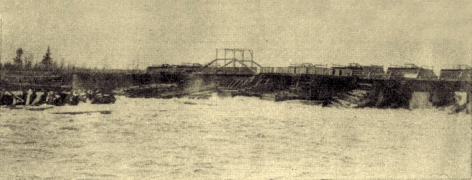 Continuing heavy rains for nearly a week in October culminated on the afternoon of the sixth as the high, turbulent waters of the Black River broke the Dells Dam, Hatfield Dam and swept practically all the business part of Black River Falls.