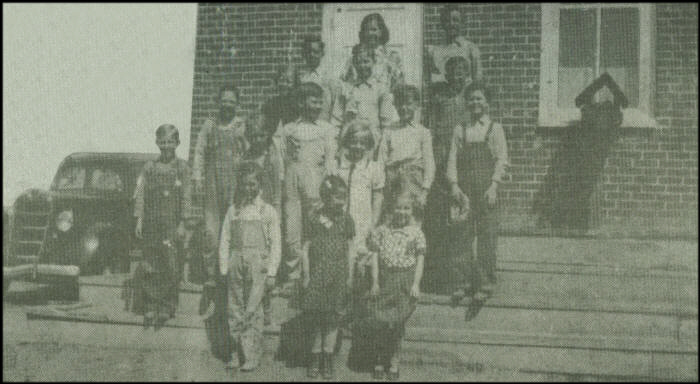 Happy Hollow School, 1936-1937, was located on County Highway C, one and three-fourth miles east of Highway 73, north of Neillsville, the school building has been remodeled into the residential home of Arlene Schnabel. Students of the 1936-1937 school year were: first row, (one identified) Elaine Krause; second row, (three identified) Don Reindel, Jerry Johnson and Lois Ayers; third row, (one identified) Synclare Ayers; fourth row, (two identified) Cleo Reindel and Clarence Krause; fifth row, (two identified) Elizabeth Embke and John Kaudy. (Photo courtesy of Lois Radke)