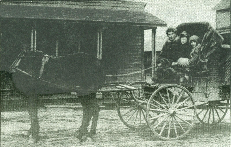 The means of travel in the late 1800s was by horse and buggy. A horsehide robe was wrapped around the passengers’ feet and legs in an effort to keep warm. (Photo courtesy of Bill Lowe)