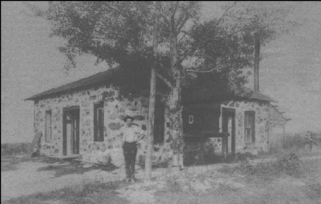 The Dells Dam Cheese Factory was located on the southeast corner of Sherwood Road and Clark Avenue, one mile east of Black River. Frank Polaske, once owner-manager of the cheese factory, stood near the building for a photo-graph, circa 1930. (Photo courtesy of the Schultz Family Collection)