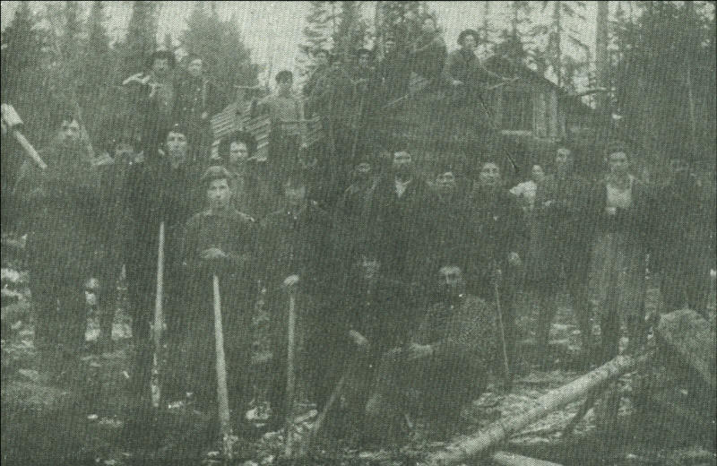 A typical lumberjack camp, one of several which were located in Clark County area during the 1860’s thru 1890’s. The rough lumber buildings served as shelter for the men when they lived and worked in the woods.