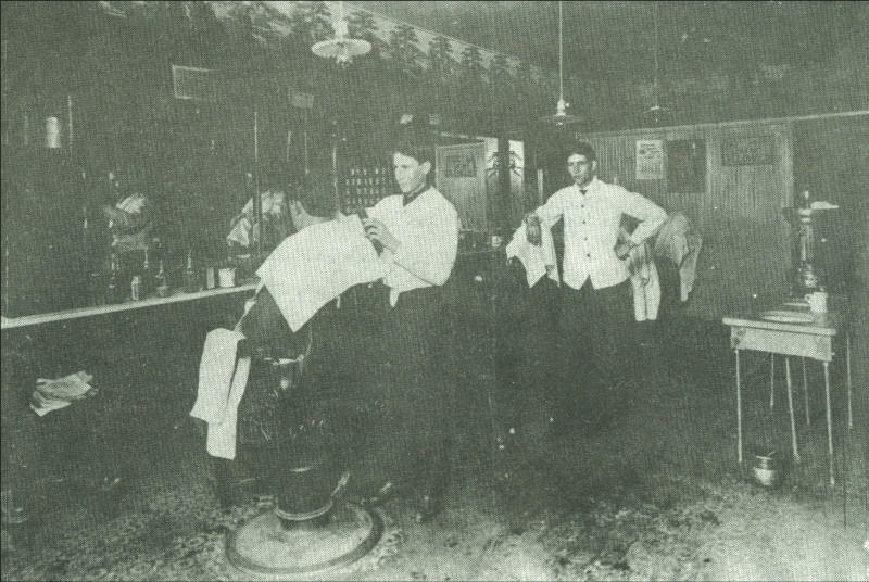 A barber shop scene one of the several such shops; which were located in Neillsville during the early 1900s. Some set up their businesses in the basement of downtown buildings.