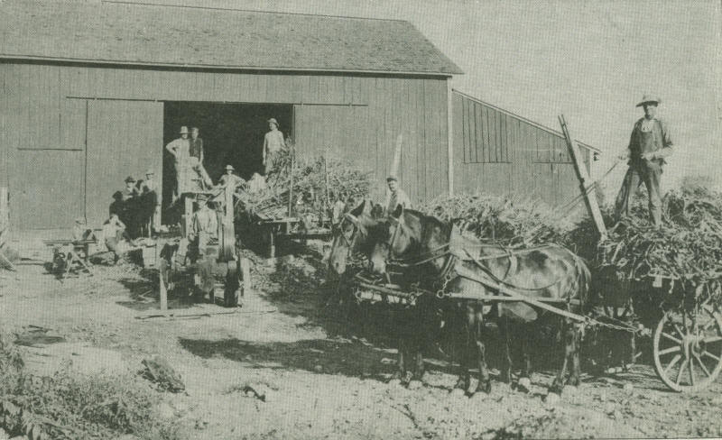 The man standing in the middle of the barn doorway with the straw hat is George E. Crothers, farm owner and then publisher of the “Republican and Press.” The two young fellows standing on the left side of the door are Donald and Wendell Crothers, sons of George E. Crothers. (Photo submitted by George H. Crothers)