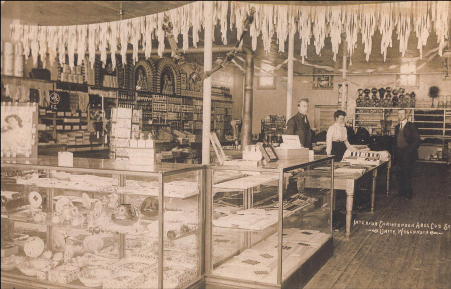 Christensen Abel Company’s General Store as it appeared, about 1915. As the word “general” implies, it carried a variety of merchandise, everything from sewing notions, fine china, grocery items, clothing meats, etc. Located along Highway 13 in Unity, the building is now occupied by Ray’s Market. (Photo courtesy of Al Gurtner, Unity Historian)