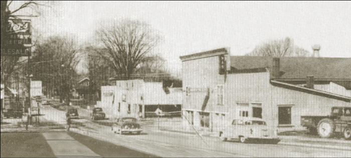 A circa 1950 scene of the Fifth Street and Grand Avenue intersection in Neillsville: The building (center of photo) on the northwest corner was Stelloh’s garage. Paulson’s car dealership and repair shop was on the lower level of the northeast corner building. The Moose Lodge Hall occupied the second story portion, serving many community needs for dances, various parties, meetings, etc.