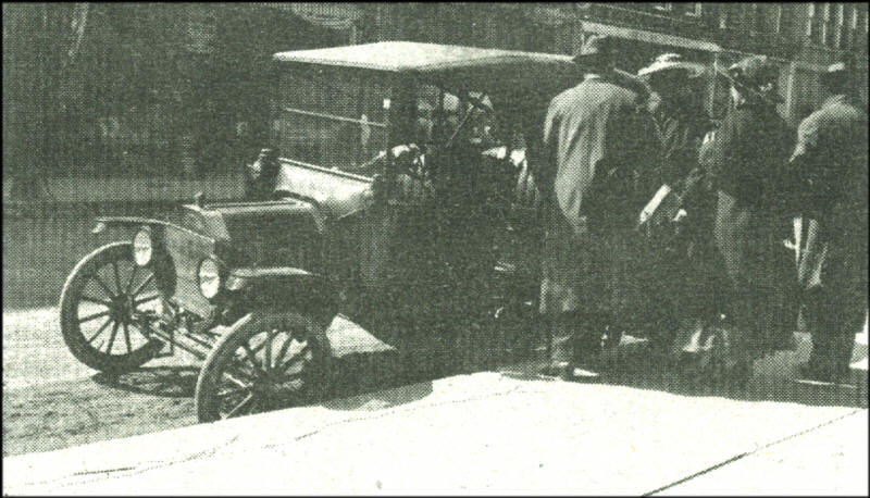 Shortly after the turn of the century, Neillsville had some automobile traffic, such as this scene indicates. Everyone was dressed in their “Sunday best.”