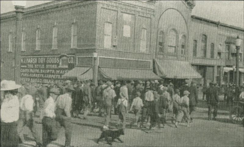 A circa 1909 day in Neillsville, with people gathering for a celebration and parade (Photo courtesy of the Glass Family Collection, Tuft’s Museum)