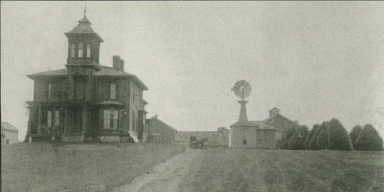 C. A. Youman’s farmstead of 400 acres was located 1 ½ miles east of Neillsville, on south side of Hwy. 10 and included an attractive residence, a showplace c.1900. The farm raised English Shire horses and purebred Holstein cattle with a large horse barn, hay barn, cattle barns and silo to facilitate the care of the livestock. In 1909, the Youmans farm started using milking machines, probably the first such venture in Clark County. Youmans was also a prominent attorney-at-law, having an office in Neillsville. (Photo courtesy of the Loomis-Seffern Family Collection)
