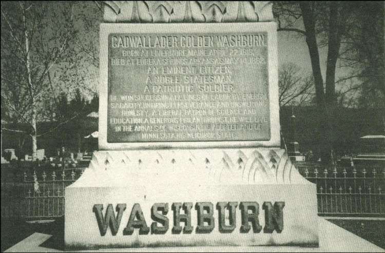 Two and a half years after Washburn’s death the Circuit Court of La Crosse felt obliged to order the estate executors to erect a monument over his grave, a sixty-foot obelisk with a 20-foot base which reduced the residual estate by $12,000.