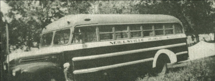 Neillsville Public Schools first bus was purchased in the early 1940s. Driven by Ray Strebing, the bus transported high school students living in the rural area southwest of the city. (Photos courtesy of the Strebing family collection)